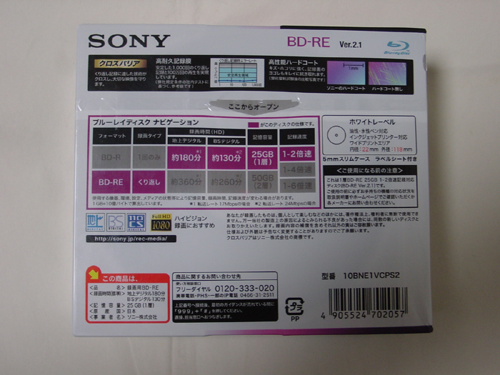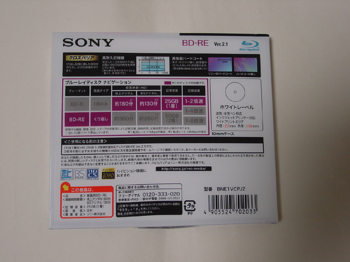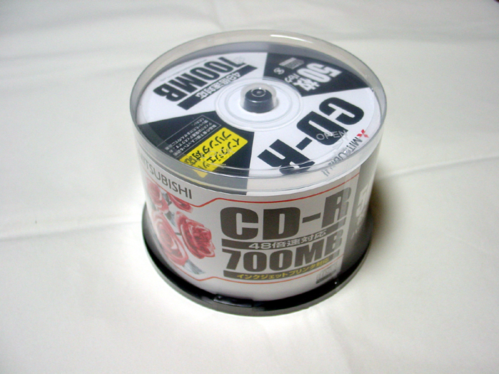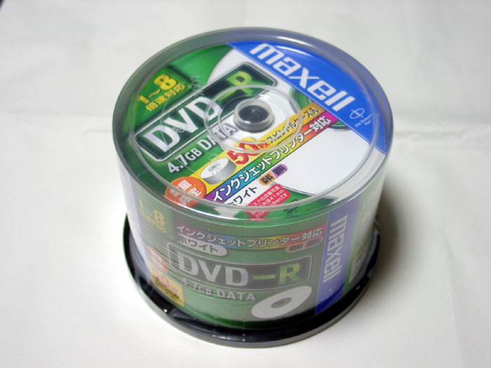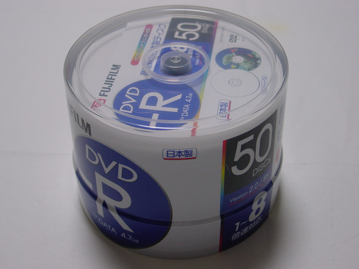 CD-R 650MB YUDEN x8 (x16対応) 15枚 Fuji x12 (誘電) 7枚 maxell x12 (MQ12) 137枚 Kodak x12 (金反射層) 8枚 Victor x16 (フタロ) 10枚 TDK x16 (フタロ) 50枚 SONY x48 (誘電) 25枚 --------------------------------------- 252枚 CD-R 700MB YAMADA (MITSUBISHI) x16(互換 AZO ) 240枚(30枚スピンドル) YAMAHA x16(誘電) 3枚 TDK x16(シアニン) 4枚 RICOH x20(台湾) 100枚 YUDEN x32(ひまわり) 11枚 SONY x32 (誘電) 7枚 SONY x48 (誘電) 30枚 YAMADA (MITSUBISHI) x48(ソニック AZO )39枚(50枚スピンドル) --------------------------------------- 434枚 ===================== CD-R メディア合計 686枚 ***************************************************************** DVD-R TDK x1 (ケース) 8枚 maxell x1 (ケース) 11枚 ---------------------------------------- 19枚 Fuji x4 TYG01 (ケース) 65枚 maxell x4 (ケース) 22枚 MITSUBISHI x4 (ケース) 1枚 ---------------------------------------- 88枚 TDK x8 TYG02 (50枚スピンドル) 50枚 Fuji x8 TYG02 (50枚スピンドル) 50枚 YUDEN x8 TYG02 (50枚スピンドル) 50枚 YUDEN x8 TYG02 (10枚スピンドル) 20枚 YUDEN x8 TYG02 (ケース) 40枚 SONY x8 TYG02 (ケース) 30枚 maxell x8 (50枚スピンドル) 50枚 maxell x8 台湾 (50枚スピンドル) 45枚 ZERO x8 (10枚スピンドル) 10枚 --------------------------------------- 345枚 MITSUBISHI x16 (50枚スピンドル) 50枚 ---------------------------------------- 50枚 ==================== DVD-R メディア合計 502枚 ***************************************************************** DVD+R RICOH x4 (ケース) 9枚 DVD+R DL maxell x2.4 (ケース) 5枚 DVD-RAM Panasonic 両面 TYPE2 1枚 Panasonic x3 (CPRM) 15枚 Panasonic x5 5枚 *****************************************************************