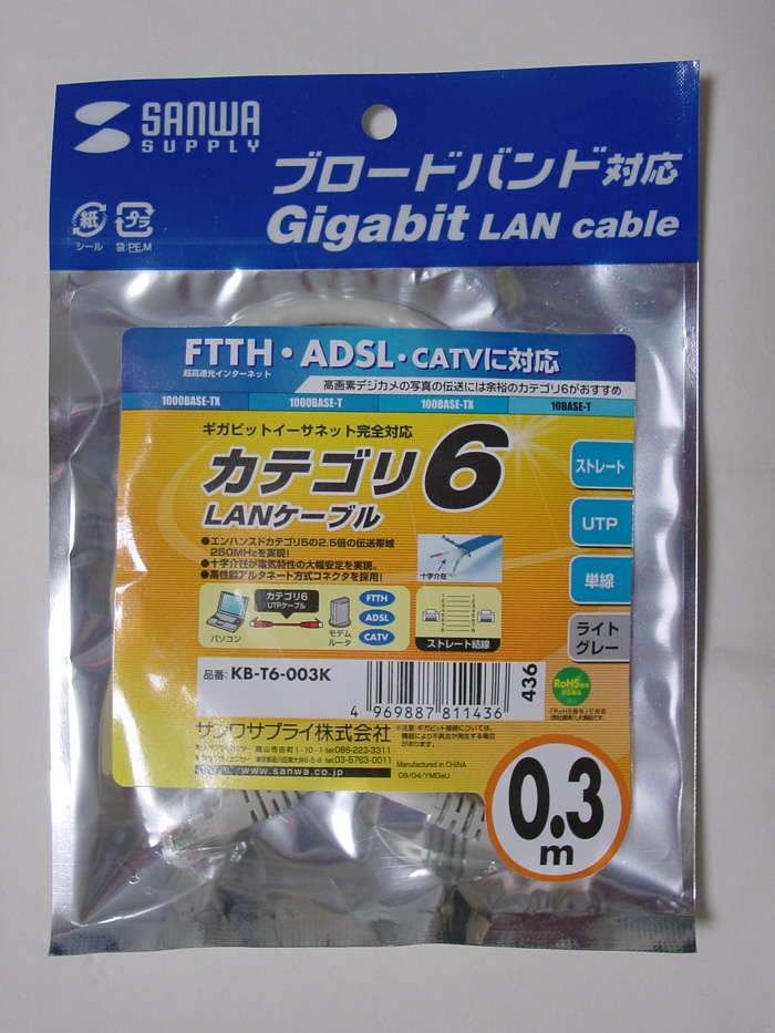 CAT6単線の KB-T6-003K という0.3m を選択した。