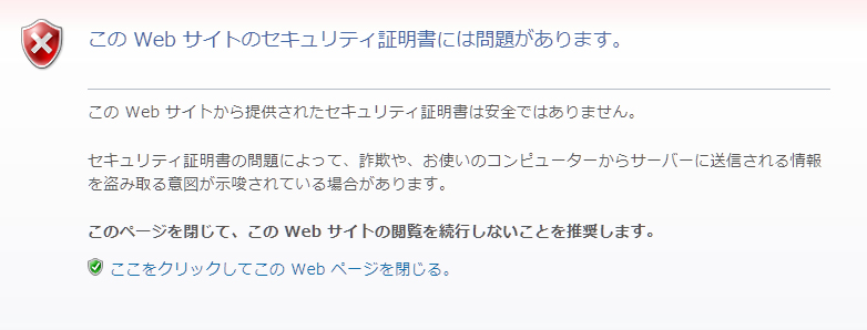 そうするとアドレスに「安全ではありません」表示が出ます。