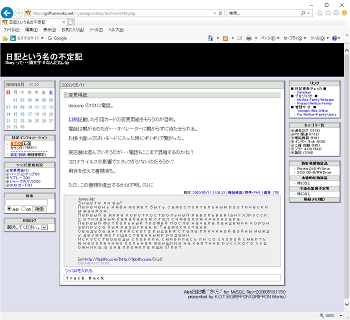 日記サイトの挙動がおかしい。