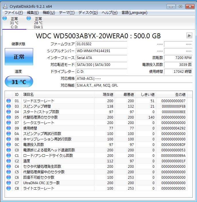 ちなみに、チェックディスクでエラーは発見されていません。