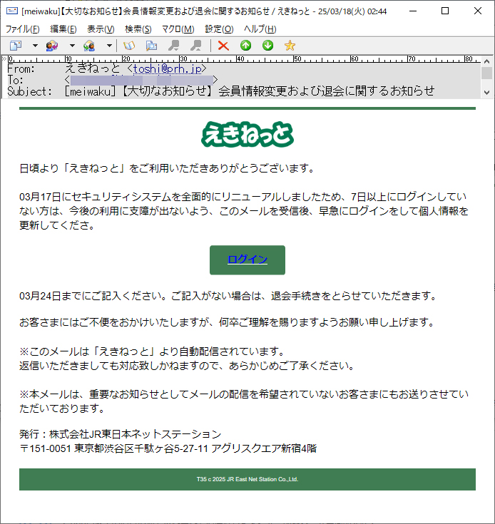 Subject に "[meiwaku]" と記載されているのは ISP が spam 判定したからです。