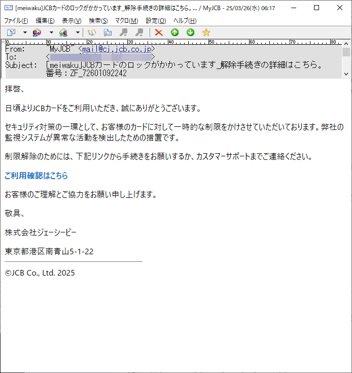 MyJCB のアドレスが違ったという事はランダムアタックの可能性が高そうです。