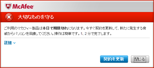 昨日記載した McAfee 更新の件で調査。