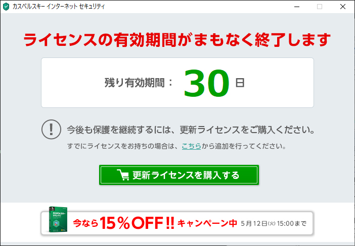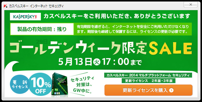AQUA は McAfee VirusScan を使っていまして、これの有効期限が迫って来ている。