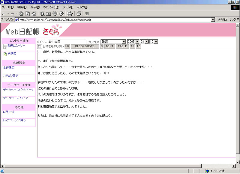 で、同じ日付で別の話題を投稿する時は・・・新規エントリーで OK ですよね?