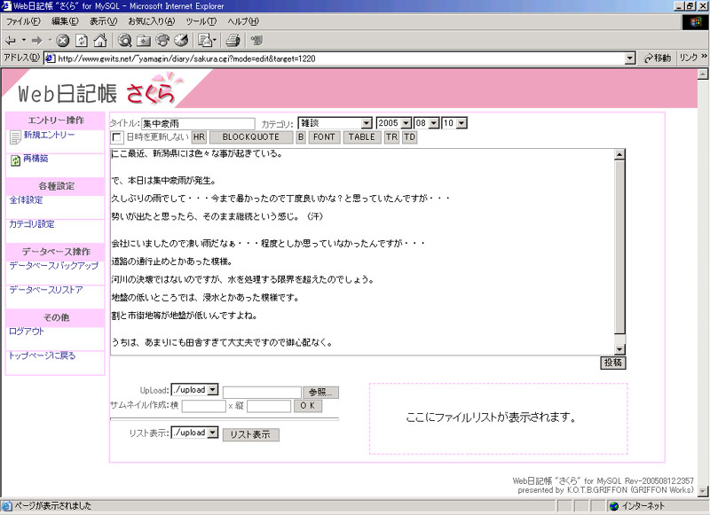 °Ü¹Ô¤¬·èÄꤷ¤¿¤é¡¢MySQL ÈǤΥǥ£¥ì¥¯¥È¥ê¤ò Diary ¤ËÊѹ¹¤¹¤ì¤Ð OK ¤«¤Ê¡£