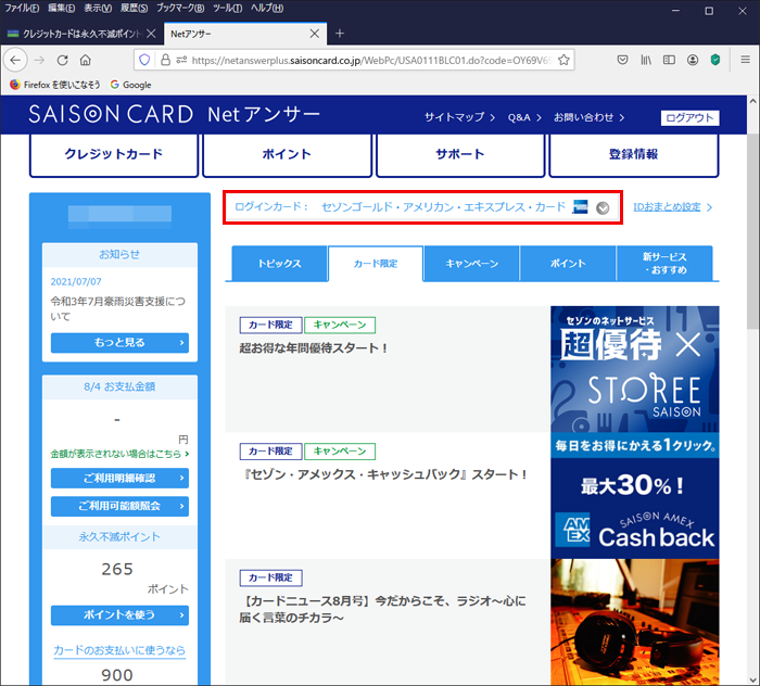 先日申し込んだセゾンゴールド・アメックスの年会費無料キャンペーン。